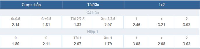 Kèo Châu Âu Pháp vs Bỉ: Đặt cược cho cửa Pháp thắng ăn tỷ lệ 2.46 Đặt cược 2 đội hòa tỷ lệ ăn là 3.21. Đặt cược cho Bỉ thắng là 3.02